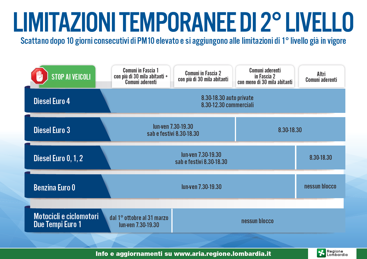 Scattano dopo 10 giorni consecutivi di PM10 elevato e si aggiungono alle limitazioni di primo livello già in vigore