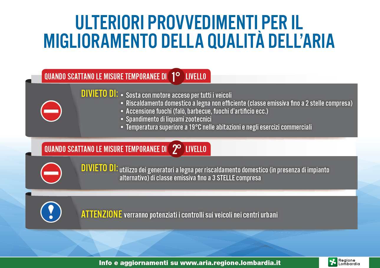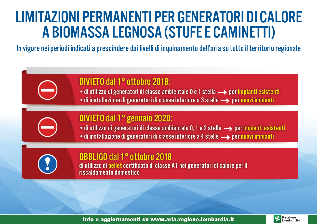 Per maggiori informazioni è possibile consultare il sito di Regione Lombardia oppure contattare il corpo di polizia locale al numero 0341 481343 (Move-In) o il servizio ambiente al numero 0341 481312 (impianti termici e combustione all’aperto).