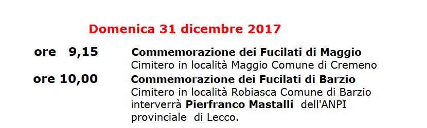 Il Comitato provinciale ANPI Lecco ricorda i 14 partigiani fucilati il 31 dicembre 1944. Rievoca inoltre i 40 giorni del rastrellamento di quel dicembre, uno tra gli episodi più drammatici e cruenti della Resistenza sul nostro territorio.
