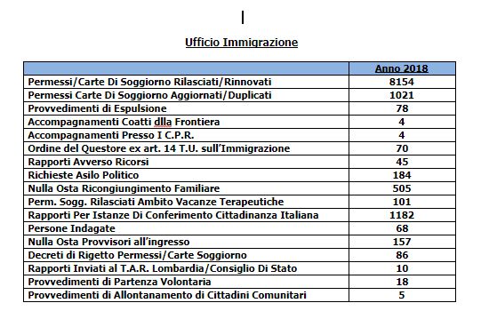 Intensa l’attività compiuta durante l’anno dall’ufficio immigrazione. Il 2018 è stato caratterizzato dall’emergenza profughi provenienti dal nord Africa, per lo più di nazionalità  della Costa d’Avorio, Senegal, Etiopia, Siria, Nigeria, Mali, Pakistan e Gambia, che sono stati collocati in più strutture di accoglienza presenti in Provincia.
