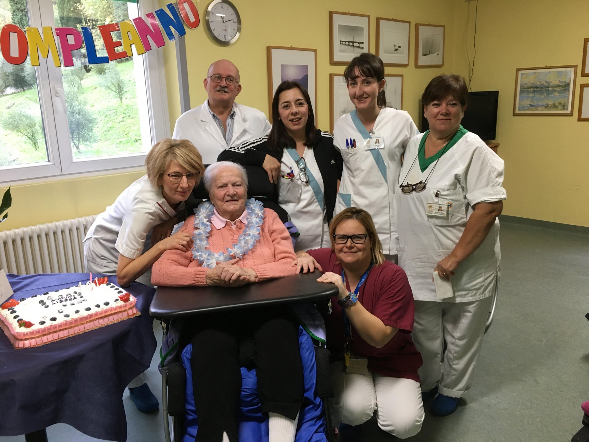Oggi, insieme alle due figlie, l’hanno festeggiata gli ospiti e il personale del terzo piano della Residenza Bettini Pazzini Gerosa Crotta con il Presidente degli Istituti Giuseppe Canali, il Direttore generale Fulvio Sanvito e il medico del nucleo, dottor Giuseppe Locatelli.
