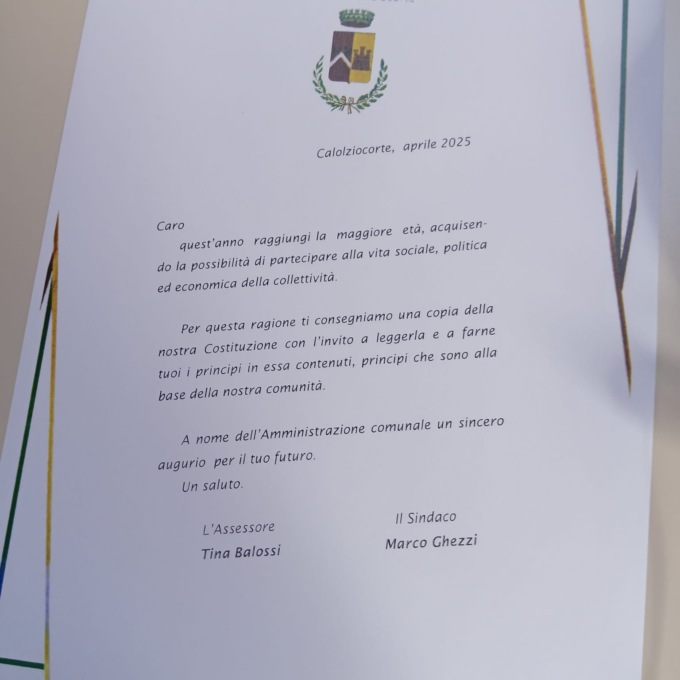 L’assessore Balossi ha poi spiegato come «Tutti gli altri ragazzi (126 in totale di cui 64 femmine e 62 maschi, ndr) hanno ricevuto o riceveranno direttamente a casa la copia della Costituzione ma, a partire dal prossimo anno, la cerimonia si svolgerà in presenza per tutti».
