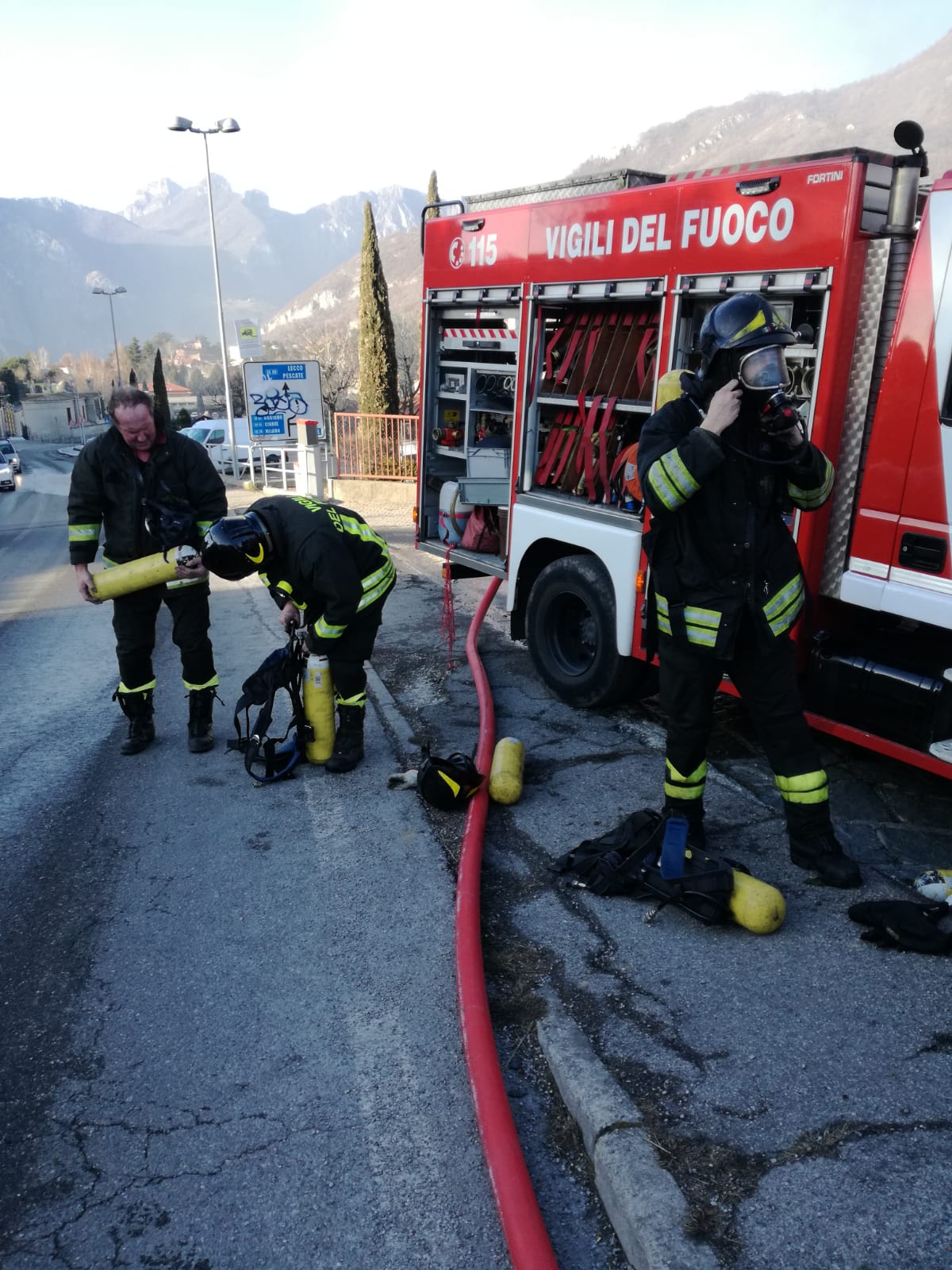 Inseme ai Vigili si sono precipitati a Galbiate anche i volontari della Protezione Civile, i Carabinieri e  i volontari del Soccorso di Calolzio che si sono presi cura delle due donne che si sono sentite male dopo aver respirato il fumo.