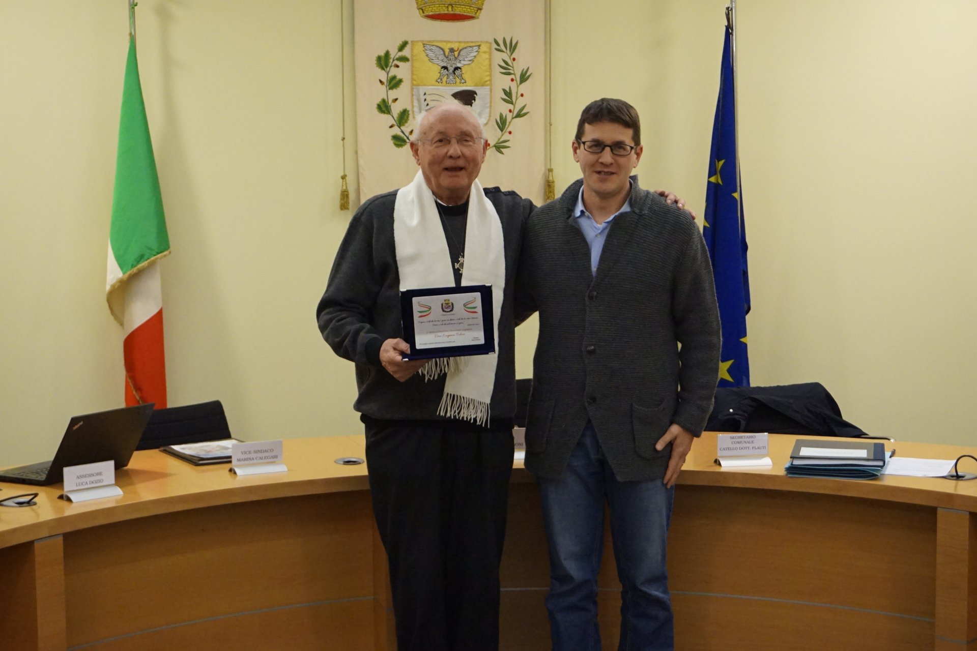 Prima però la giunta Passoni ha voluto dedicare un momento speciale per don Eugenio Folcio, storico parroco di Olginate per 14 anni e che ha lasciato la comunità lo scorso settembre. «Un grande grazie a don Eugenio per due cose: la fede personale che è riuscito a trasmettere ad ogni membro della comunità e per la riqualificazione dell’oratorio – ha detto il primo cittadino – Non è solo una cosa materiale perché ci ha messo a disposizione uno spazio per tutta la comunità per crescere e confrontarci. Ha seminato bene e ora tocca a noi raccogliere i frutti».