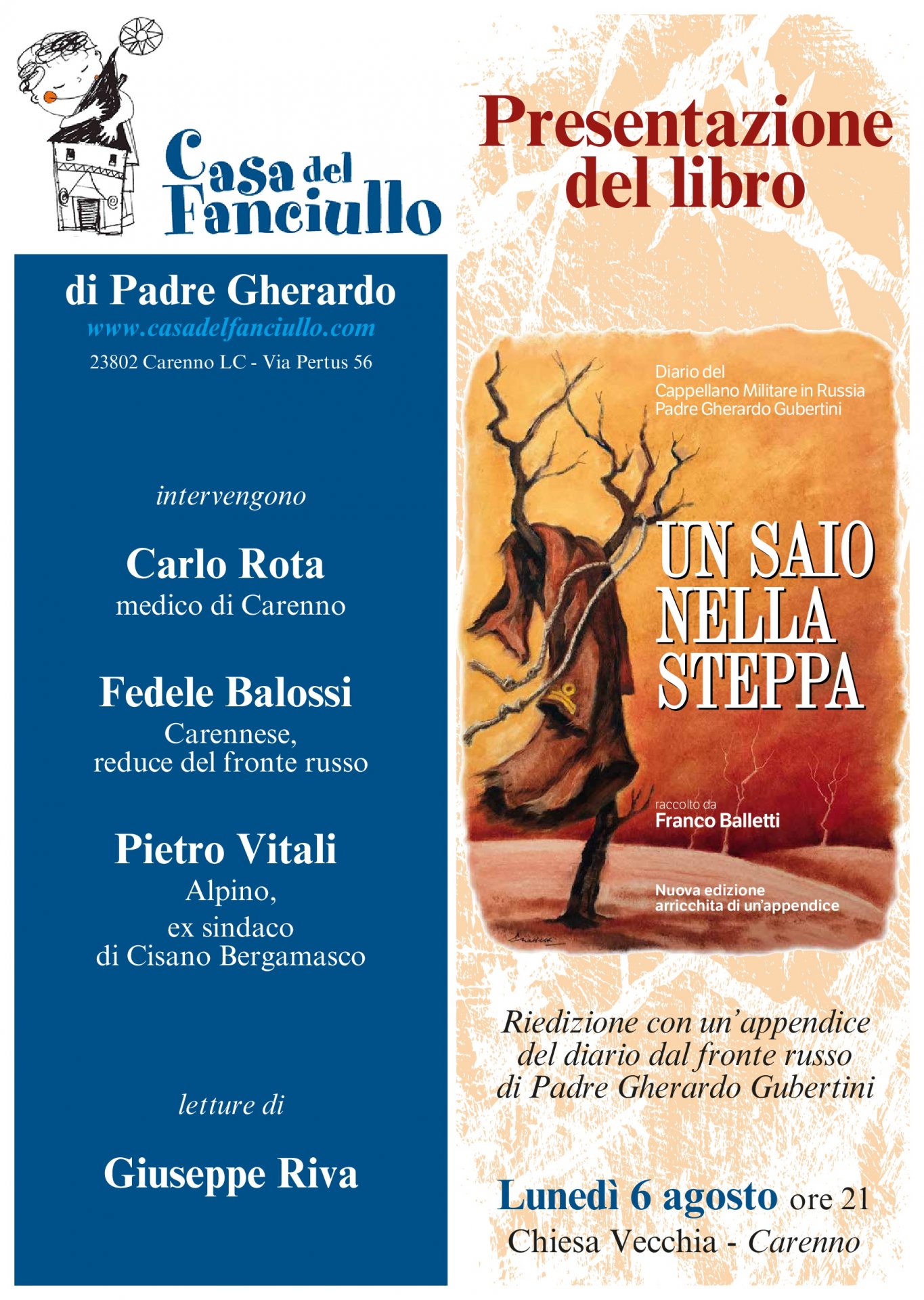 In occasione del 70° anniversario della Casa del Fanciullo di Carenno, è stata realizzata una riedizione del libro “Un saio nella steppa”.