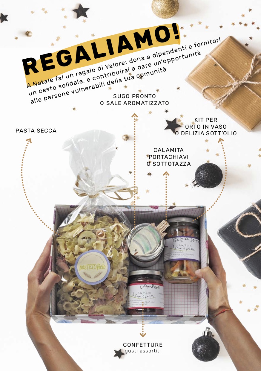 Valoriamo ha già pensato anche al Natale con delle proposte che coinvolgessero il più possibile il “lavoro”. Un regalo che dà valore al lavoro delle persone svantaggiate e che crea delle opportunità lavorative per quel pezzo di comunità che vive una situazione di esclusione dal lavoro. Tutto il ricavato dalla vendita dei cesti servirà infatti a finanziare gli inserimenti lavorativi delle persone disoccupate intercettate dal progetto.