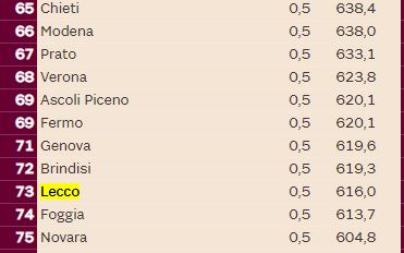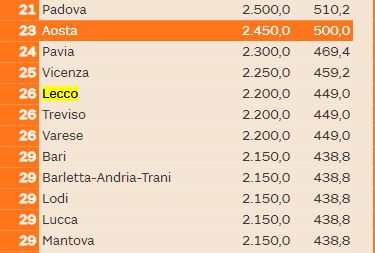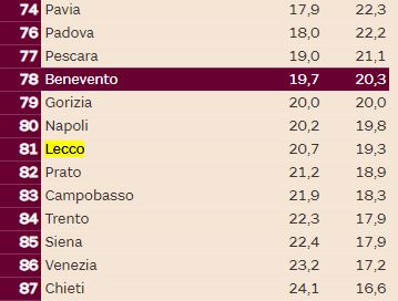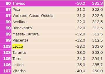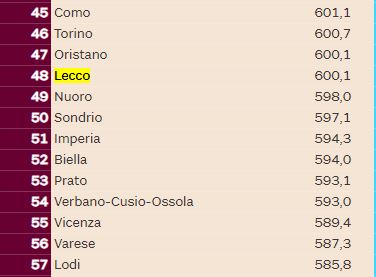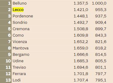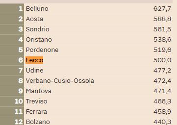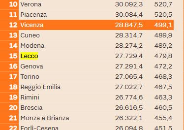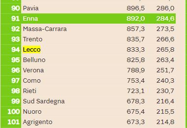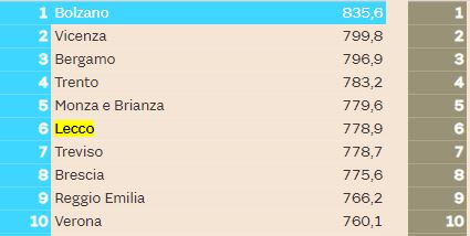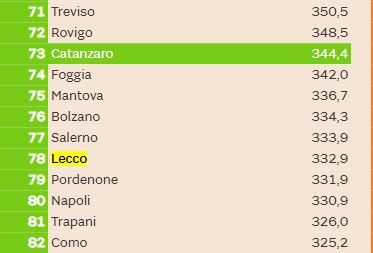 LEGGI ANCHE La qualità della vita di Lecco cala al quindicesimo posto