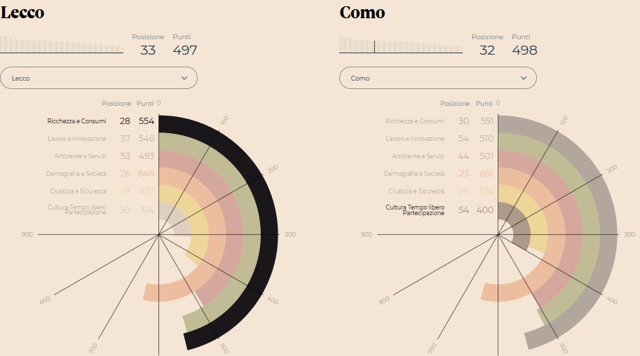 In questo campo i “cugini” non fanno meglio di noi. Lecco è evidentemente più ricca di Como. “Noi” ci conquistiamo un 28esimo posto, “loro” sono due posizioni dietro.