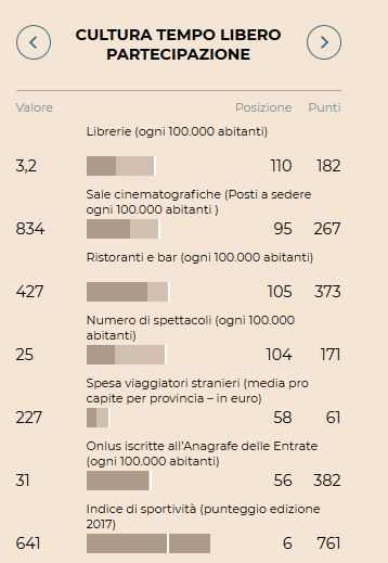 In alcuni settori Lecco primeggia. In altri come la cultura (90esimo posto) siamo quasi fanalino di coda