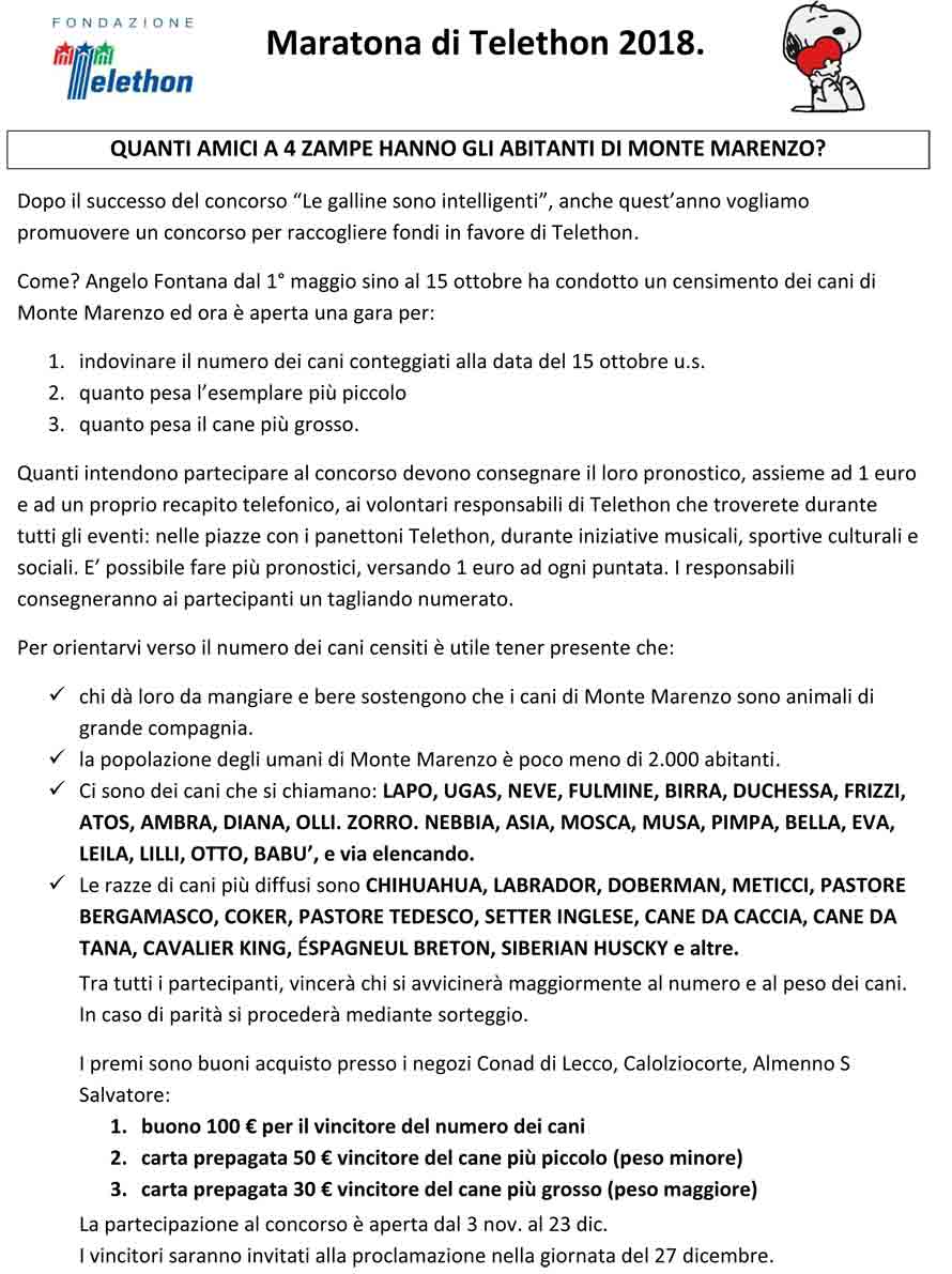 Dopo il successo del concorso “Le galline sono intelligenti”, anche quest’anno la Polisportiva di Monte Marenzo promuove un concorso benefico per raccogliere fondi in favore di Telethon.