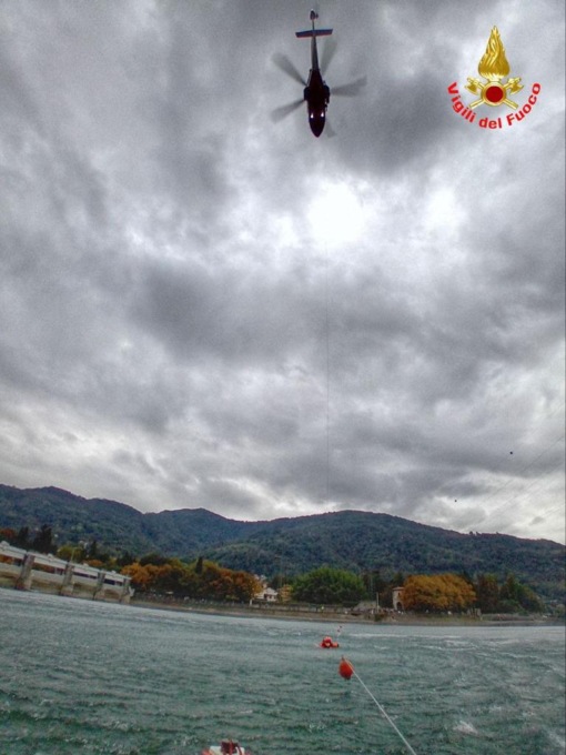 Ingente come detto la mobilitazione dei soccorritori: sul posto si son precipitati i Vigili del fuoco con diversi mezzi terrestri, la squadra nautica con i sommozzatori e anche l’elicottero.