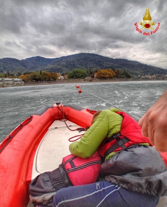 Quattro canoisti in difficoltà alla diga di Olginate salvati dai Vigili del fuoco