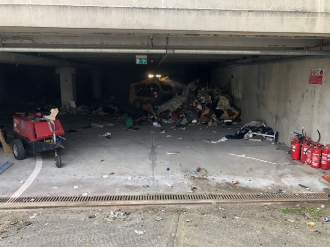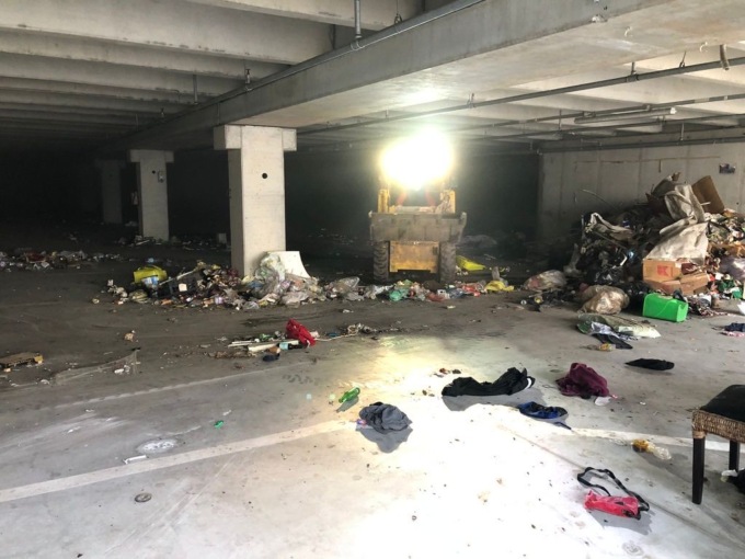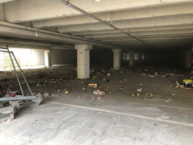 Ruspe nel parcheggio coperto dell’interscambio: via montagne di rifiuti