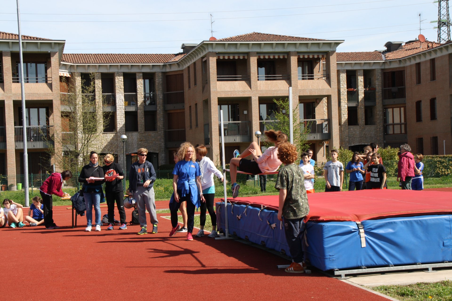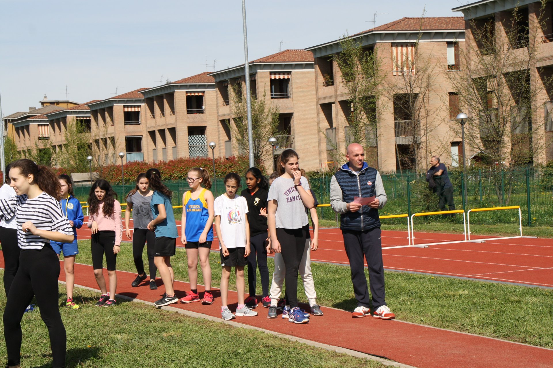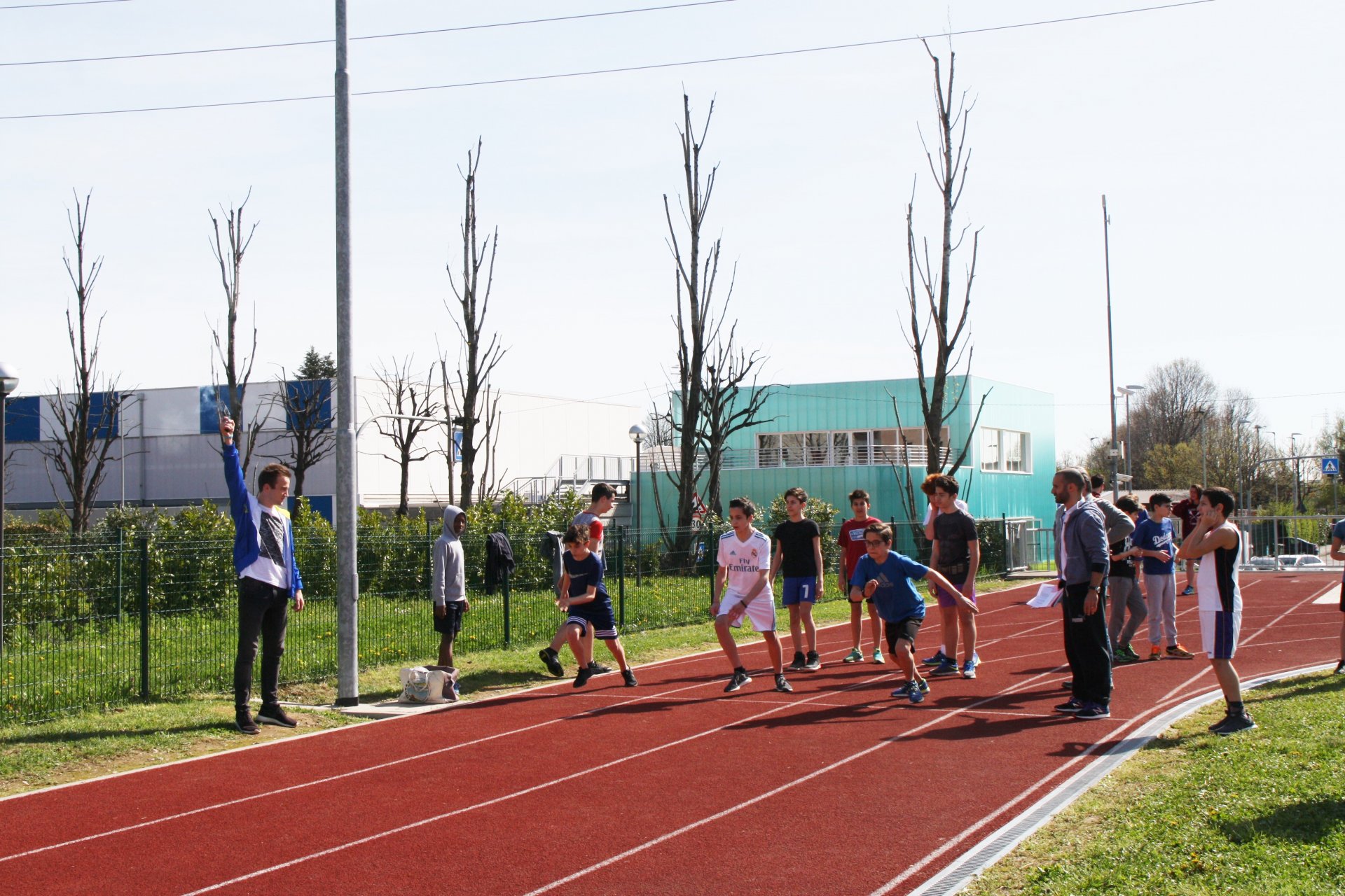 Studenti del Manzoni a scuola questa mattina sulla pista di atletica.