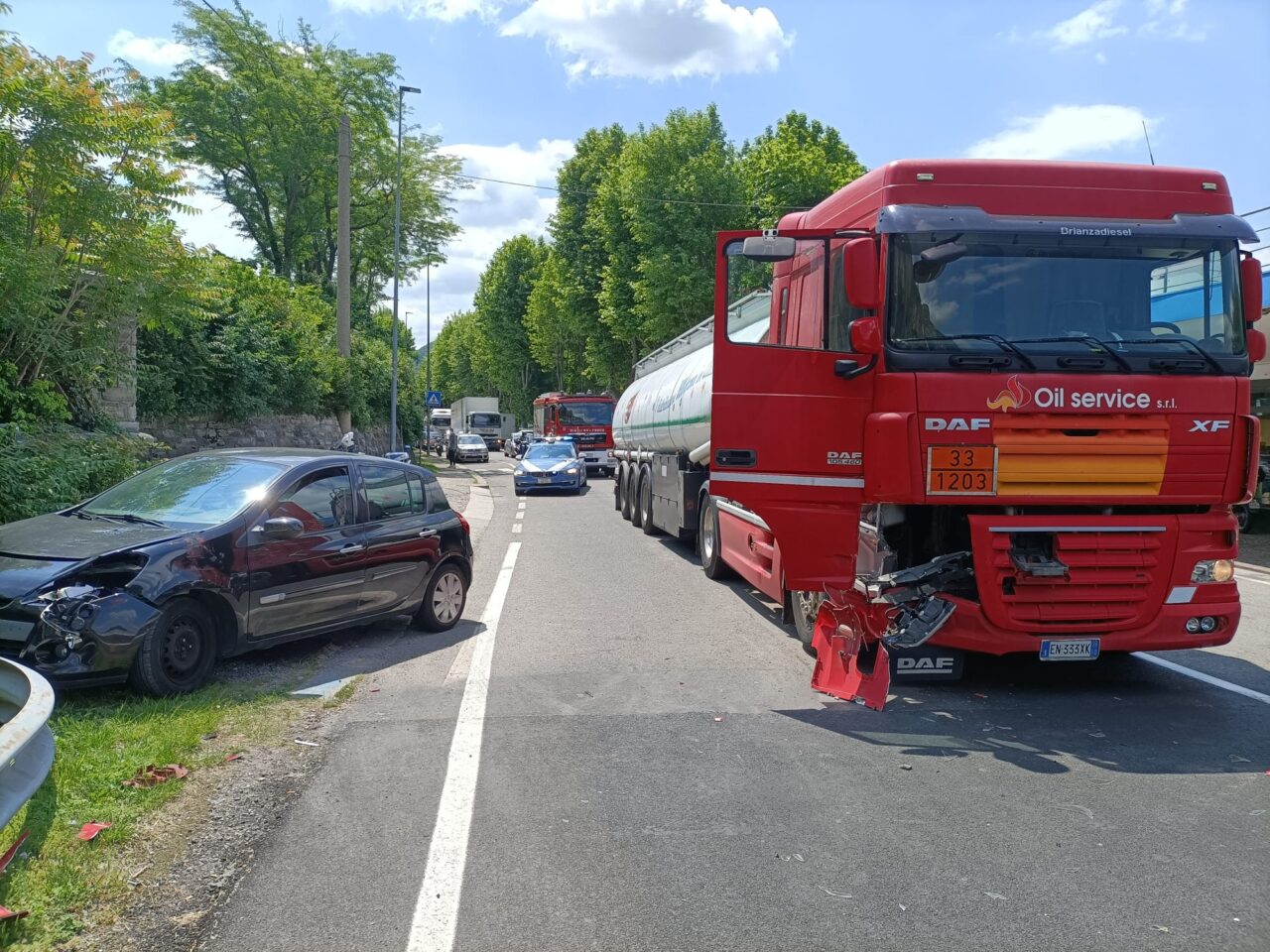 Schianto tra una maxi cisterna e un’auto all’imbocco della Statale 36