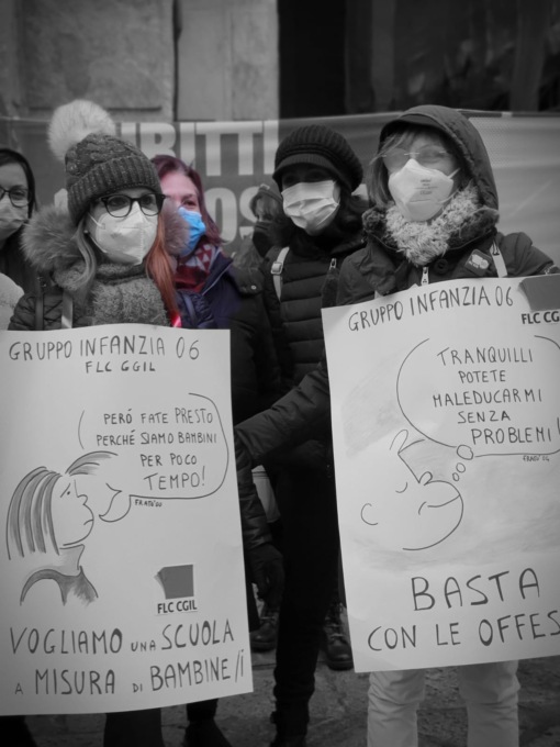 “Anche gli studenti hanno voluto dare man forte alla mobilitazione, sfilando in un corteo partito da piazza Cairoli e terminato in piazza Fontana – sottolinea il comunicato – I dimostranti hanno chiesto, tra le altre cose, il riconoscimento della loro dignità professionale attraverso una giusta retribuzione, per avere un salario in media con quello delle/dei lavoratrici/lavoratori delle scuole europee e non inferiore, a parità di livello, del 15%; la stabilizzazione dei colleghi precari con almeno tre anni di servizio; un intervento sulle cosiddette “classi pollaio”.”