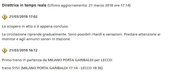 Si è concluso da pochi minuti lo sciopero dei treni che ha fatto dannare non poco i pendolari lecchesi nella giornata di oggi.