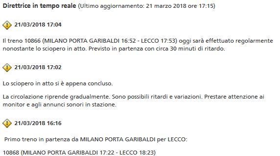 Aggiornamento delle 18. Dopo lo  sciopero dei treni si registrano ritardi e cancellazioni.
