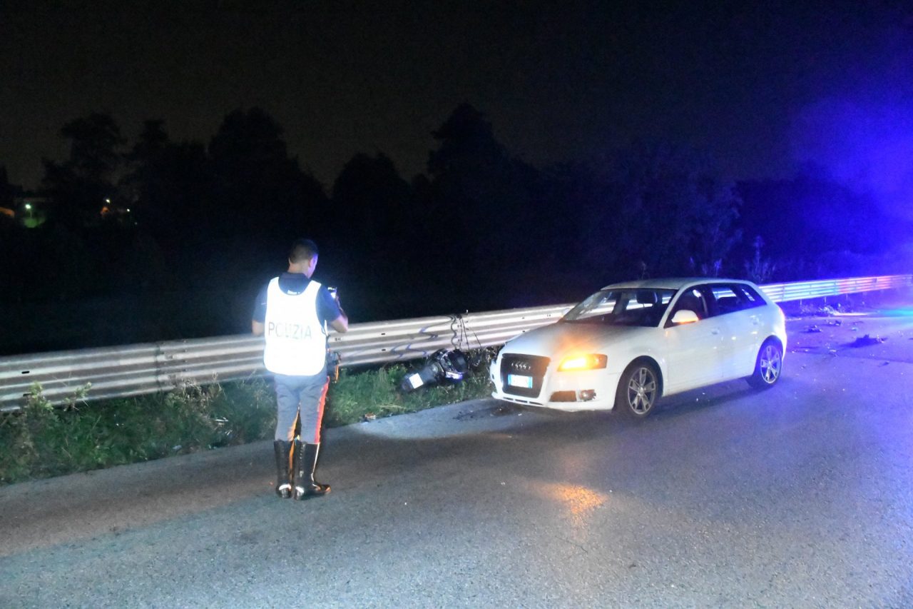 L’impatto è stato violentissimo tanto che lo scooter si è disintegrato e il centauro è finito sul parabrezza dell’auto sfondandolo.