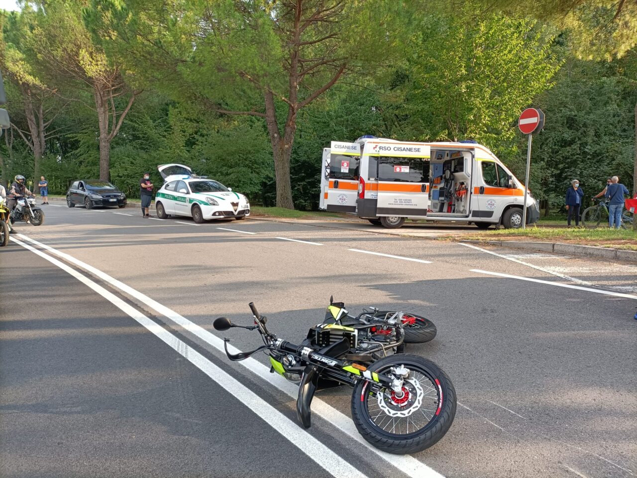 Scontro frontale tra moto nel pomeriggio di oggi, mercoledì 22 settembre 2021 a Calolziocorte. Ad entrare in violenta  collisione sono state una Kawasaki con in sella un uomo di 45 anni e  una Fantic 50 condotta da un ragazzino di 15 anni. Entrambi, dopo l’impatto sono finiti a terra riportando serie ferite. L’incidente è avvenuto intorno alle 16.40 in via Alcide de Gasperi ovvero il lungolago in zona Lavello all’altezza della ditta Fontana.  La strada è stata temporaneamente chiusa per consentire le operazioni di soccorso.