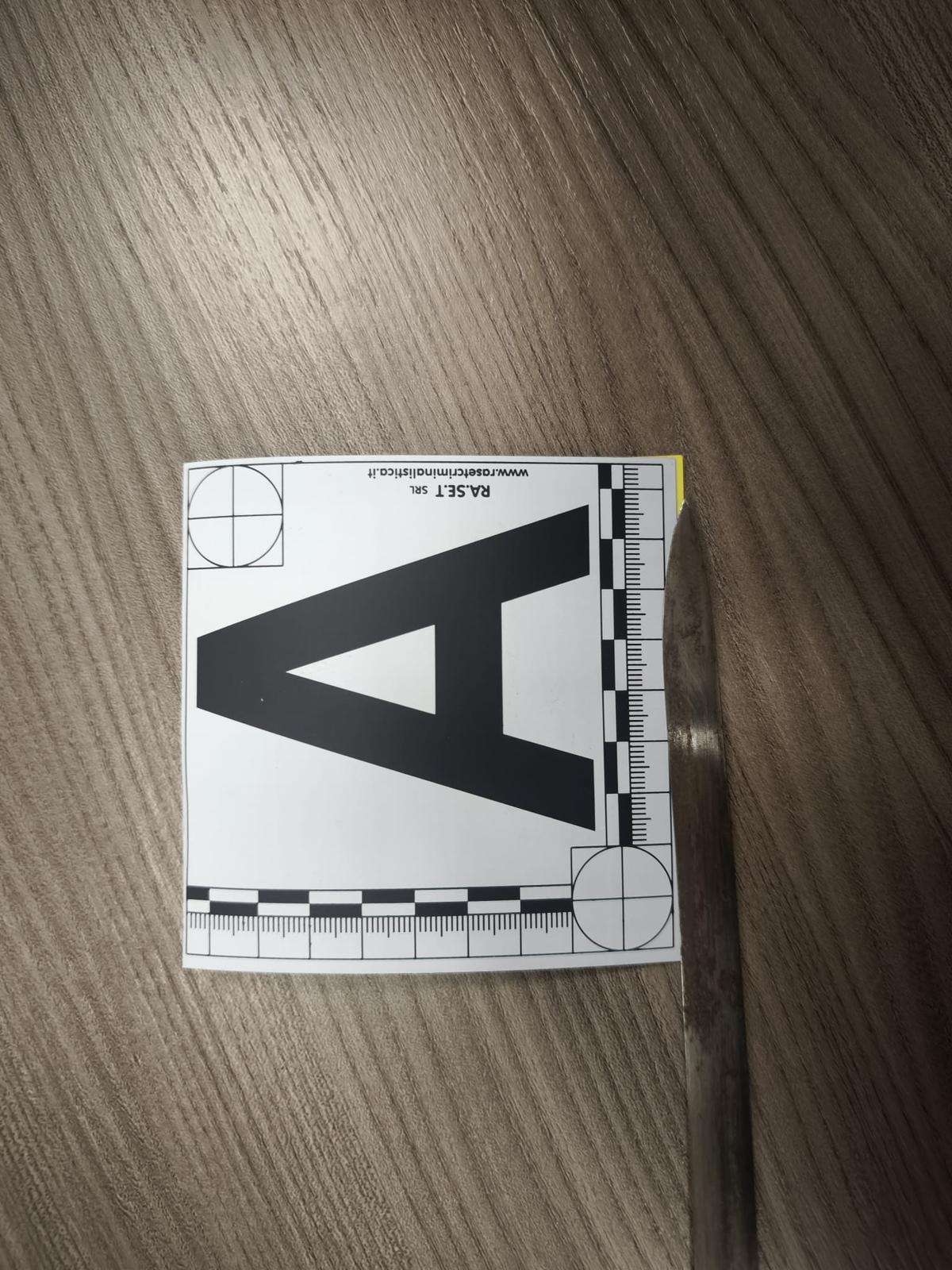 L’arma, lunga circa un metro compresa l’elsa, aveva una lama lunga circa 80 centimetri che, pur essendo priva di filo, terminava con una punta acuminata.