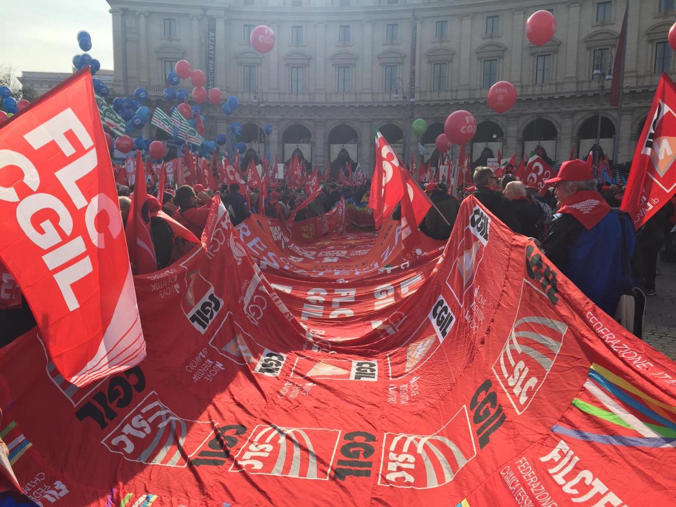I sindacati tornano alla carica. Questa mattina Cgil, Cisl e Uil si sono dati appuntamento prima in piazza Repubblica, poi sono giunti in corteo a piazza San Giovanni per il comizio che ha visto sfilare sul palco i segretari generali Maurizio Landini, Annamaria Furlan e Carmelo Barbagallo. Una movimentazione importante partita da tutta la Penisola, che ha coinvolto 1300 autobus, due navi, dieci treni, quindi le delegazioni dei nostri territori.