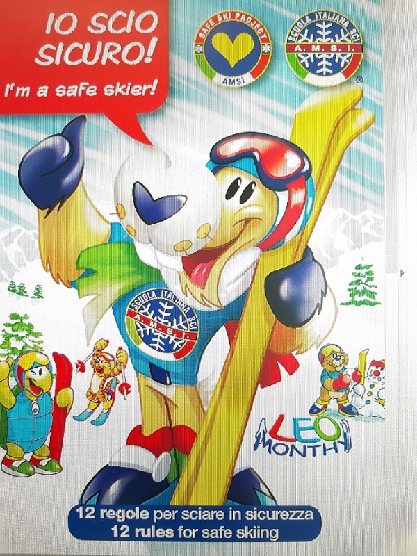 Sciare in sicurezza e’ la regola che l’Associazione dei maestri di sci, che aderisce al progetto, si propone di divulgare. Per osservare un comportamento corretto italiani l’Amsi ha stilato una brochure con 12 regole di condotta sulle piste da sci. Le lezioni sono impartite da Leo Monthy, la mascotte della Scuola italiana di sci. I buoni consigli, stampati in italiano e in inglese, sono indicazioni indispensabili per divertirsi sulla neve in modo responsabile e vanno dalle istruzioni per i sorpassi alle soste, dalle traiettorie al rispetto della segnaletica, dalla scelta della direzione ai comportamenti da adottare in caso di incidenti.