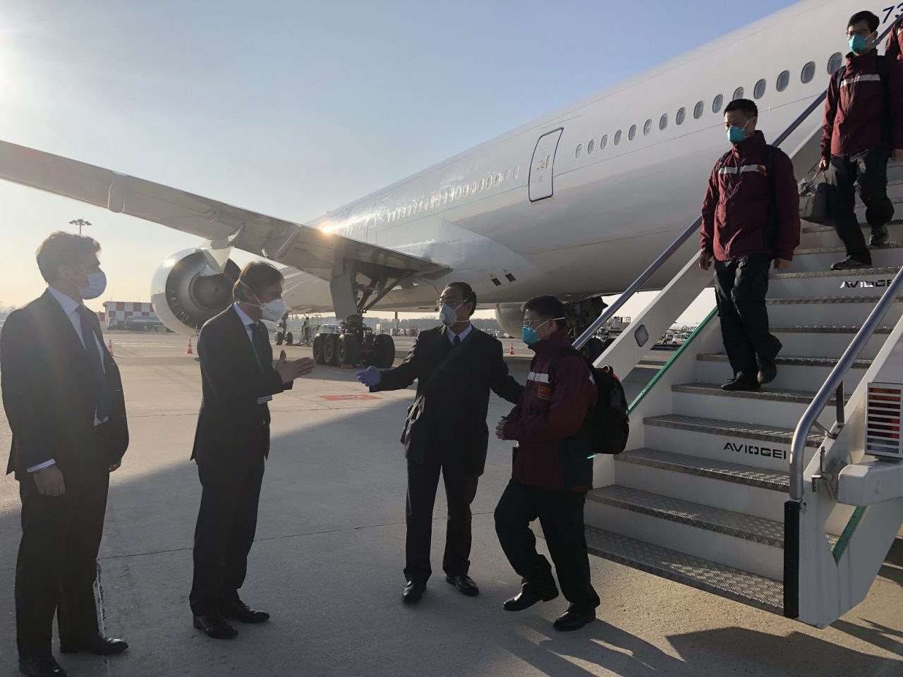 È atterrata ieri all’aeroporto di Malpensa la delegazione cinese, proveniente dalla provincia dello Zhejiang, composta da 7 medici, 3 infermieri, 3 tecnici con il materiale destinato agli ospedali lombardi. Ad attendere gli operatori sanitari c’erano il vicepresidente della Regione Lombardia Fabrizio Sala e il sottosegretario alla Presidenza con delega ai Rapporti con le delegazioni internazionali Alan Christian Rizzi.Dalla Cina sono arrivate oltre 400.000 mascherine, 5.000 indumenti protettivi medici, ventilatori, oltre a guanti, occhiali protettivi, monitor, indumenti protettivi, disinfettanti e tanto altro ancora.