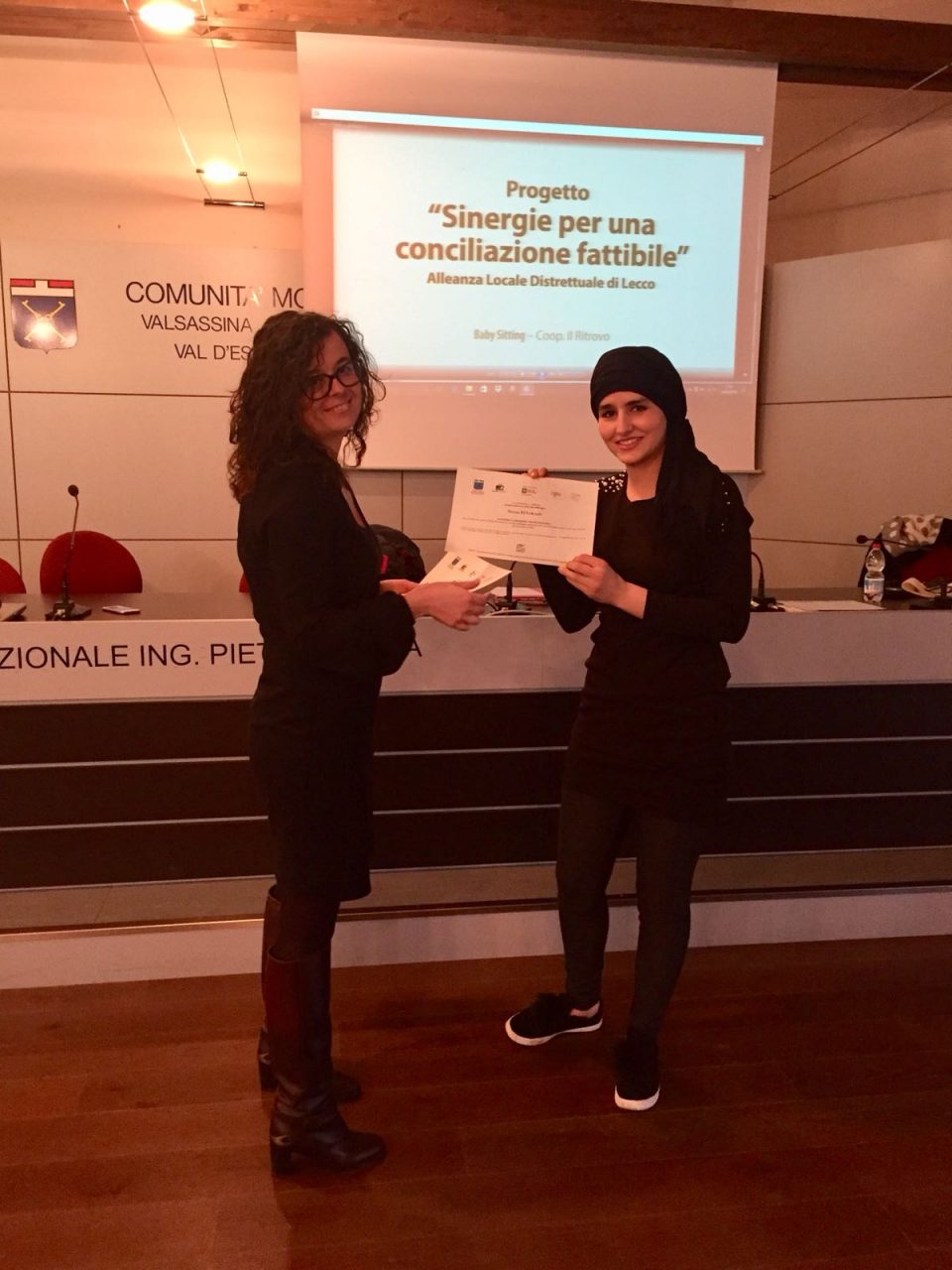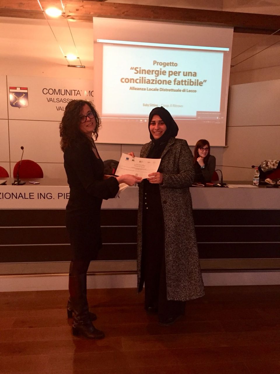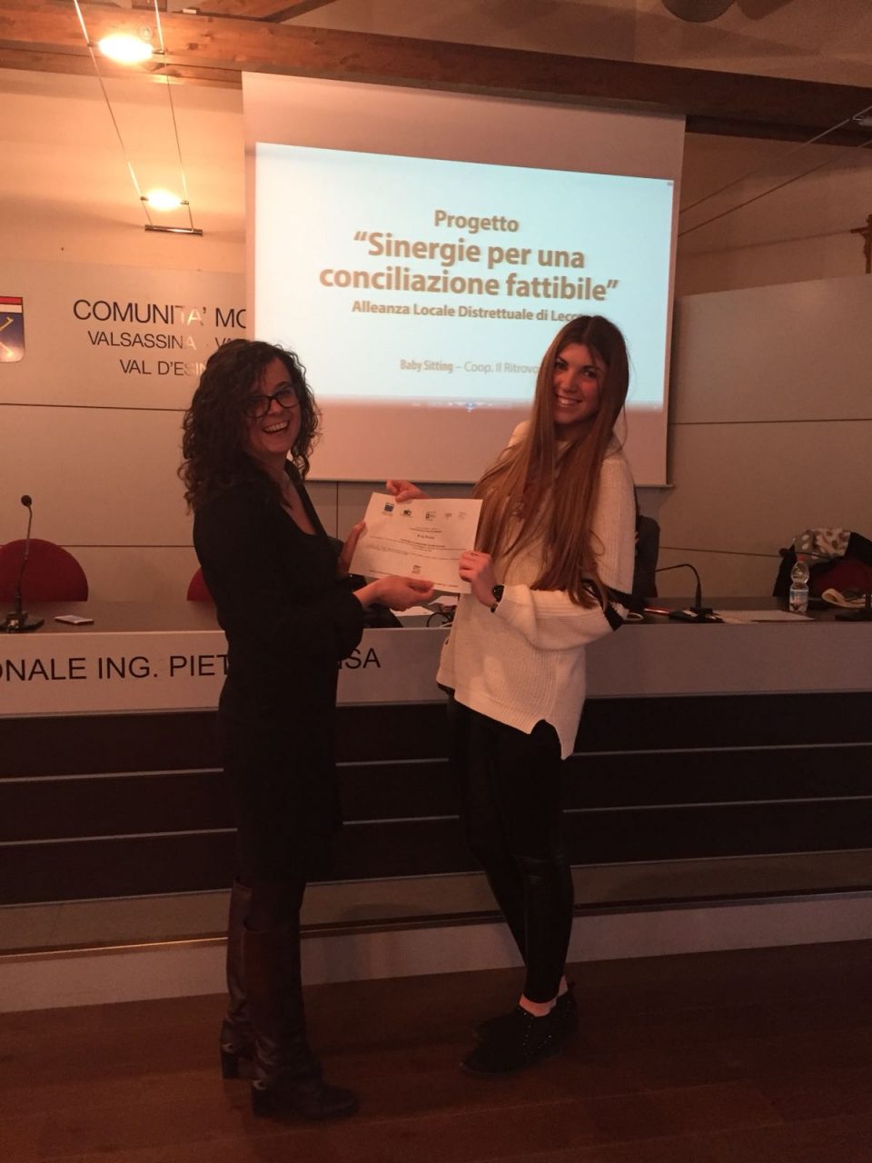 Le corsiste hanno partecipato, nel periodo settembre-dicembre 2017, ad una formazione pedagogica educativa di sedici ore e un tirocinio esperienziale di sei ore, con la supervisione del personale dell’asilo nido “Il Ritrovo”. L’iniziativa è stata promossa e finanziata da Regione Lombardia a supporto degli interventi di conciliazione famiglia-lavoro DGR 5969/2016 ed azione inserita all’interno del progetto “Sinergie per una conciliazione fattibile.” Alla consegna degli attestati erano presenti la dr.ssa Clara Camerin, referente Conciliazione dell’ATS della Brianza, e la dr.ssa Federica Bolognani e dott.ssa Paola Arrigoni della Comunità Montana, ente capofila del progetto.