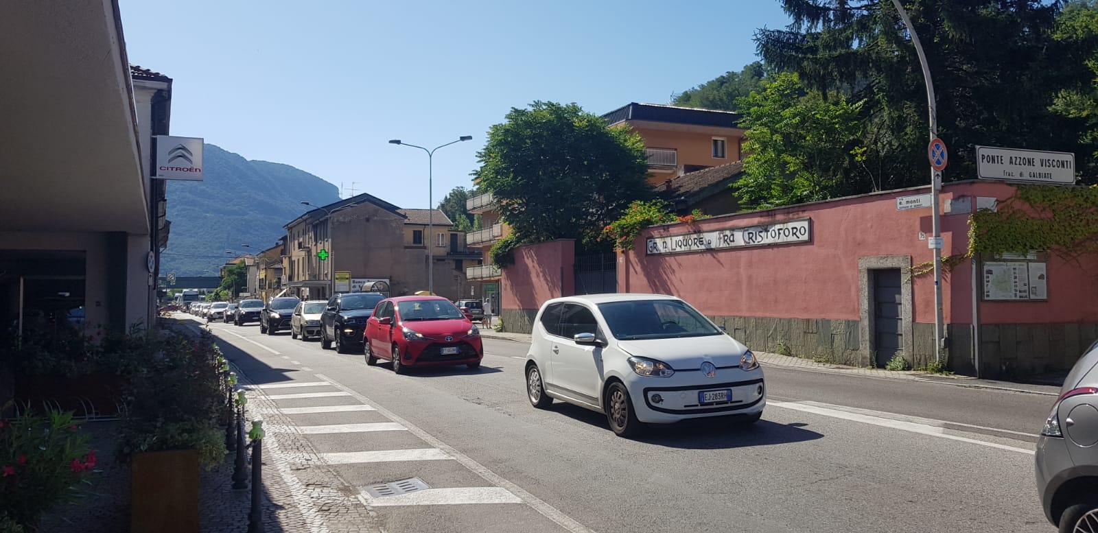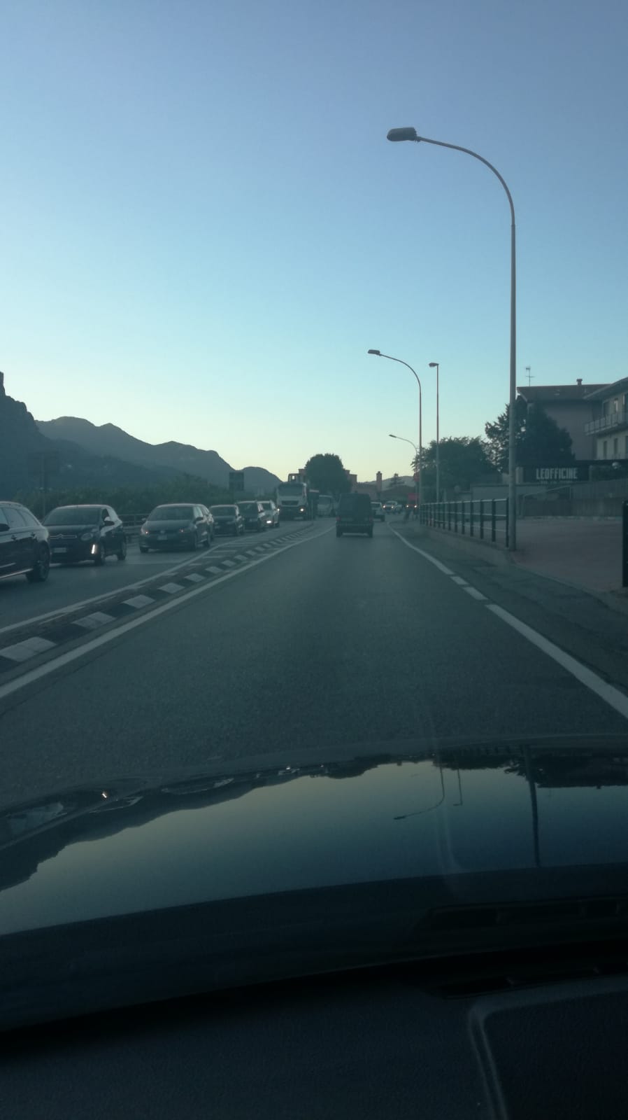 Continuano imperterrite le code. Ecco la situazione all’ingresso di Lecco nella zona tra ponte Azzone Visconti.