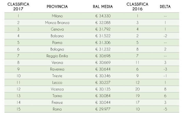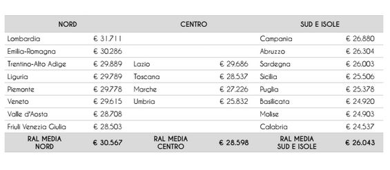 Come detto la regione Italiana dove vengono garantiti i compensi migliori è la Lombardia con una Retribuzione Annua Lorda  di oltre 31.000 euro. Un primato che si era già guaragnata nel 2016.