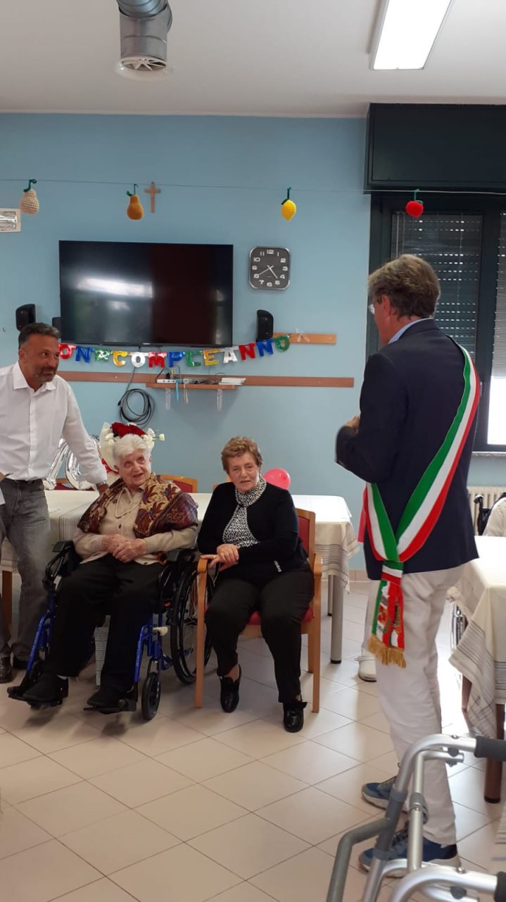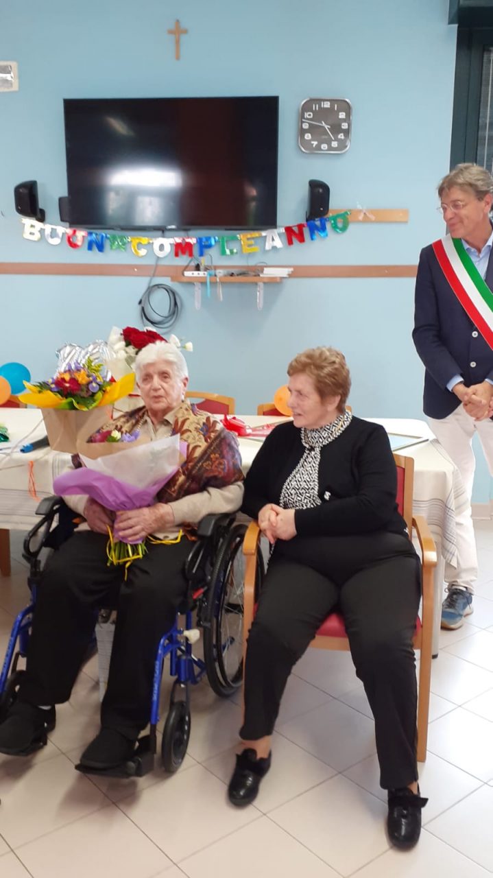 Ad organizzare la splendida sorpresa i due figli, le nuore e i due nipoti; con la partecipazione del sindaco Marco Ghezzi, dell’assessore ai servizi sociali Tina Balossi, di un numeroso gruppo di ospiti della Casa di riposo, del direttore della struttura Ivano Venturini e di don Leone Maestroni che ha donato alla festeggiata una copia del suo certificato di battesimo, dopo una lunga ricerca negli archivi parrocchiali.