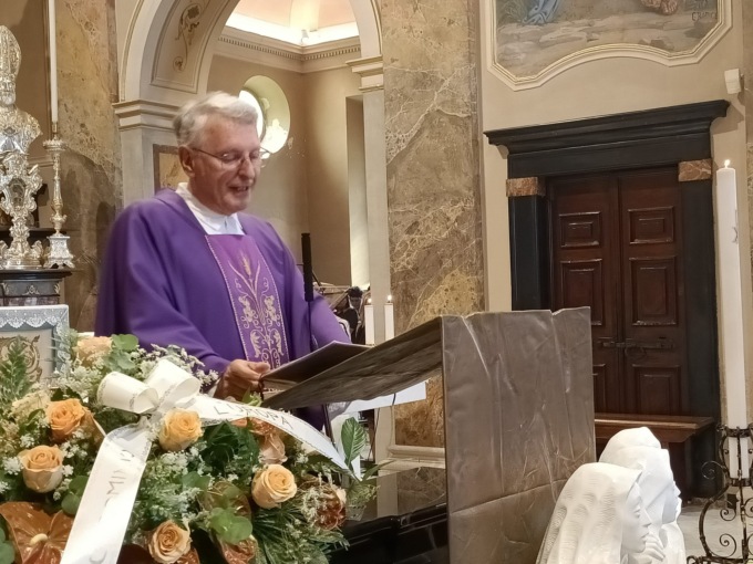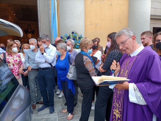 “Non aspettarti la solita predica istituzionale, ma dal cielo accetta e ascolta le parole a briglia sciolta che vengono dal cuore e che ascolteranno anche i tuoi cari. – ha detto il sacerdote cercando nell’animo la forza per parlare con il sorriso sulle labbra – Certo che se volevi una grande festa con tutti gli amici potevi dirlo, e non fare tutto questo casino… Ho in mente mamma e papà lì seduti inginocchiati nella chiesa di Margno davanti alla Madonna durante il periodo del trapianto. Ci speravano Erano lì a chiederle di guarire il loro figlio. E’ passata solo una manciata di anni e ora vedo lacerato il legame che ci ha uniti in questi 37 anni. Solo la tua mamma e il tuo papà hanno sentito fin dal primo istanti il battito del tuo cuore, il tuo cuore stanco ma sempre pieno d’amore. Un papà e una mamma che ti hanno rincorso, che hanno ancora il fiatone dell’affanno del venire a cercarti per non separarsi da te. E poi un gesto d’amore, amore vero, che non fa calcoli, amore dei genitori che hanno sperato fino alla fine per te. Ora si asciugano le lacrime nella consolazione a chi sta loro accanto”.