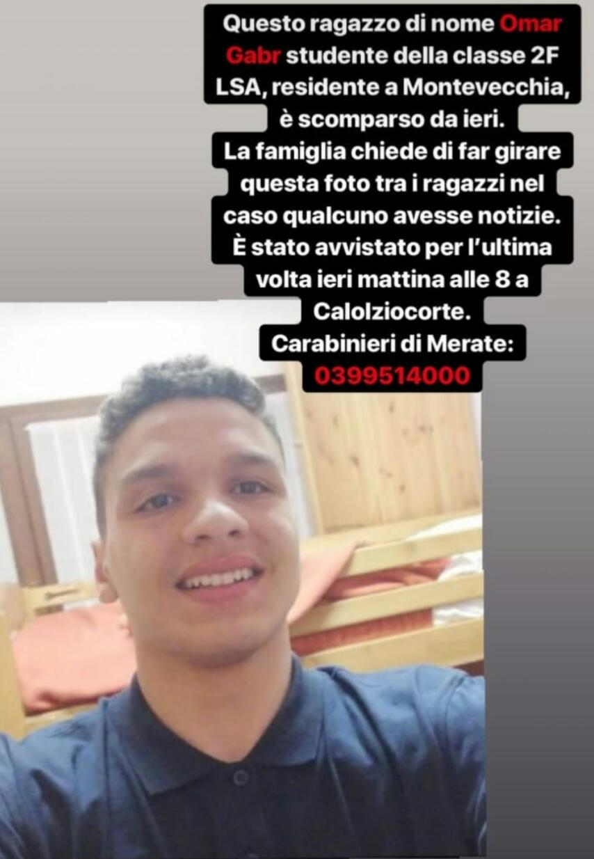 Omar lunedì mattina come sempre è arrivato in staziona a Calolzio per andare a scuola. Ma nessuno in classe l’ha visto. Non solo, ma non ha più fatto rientro a casa.
