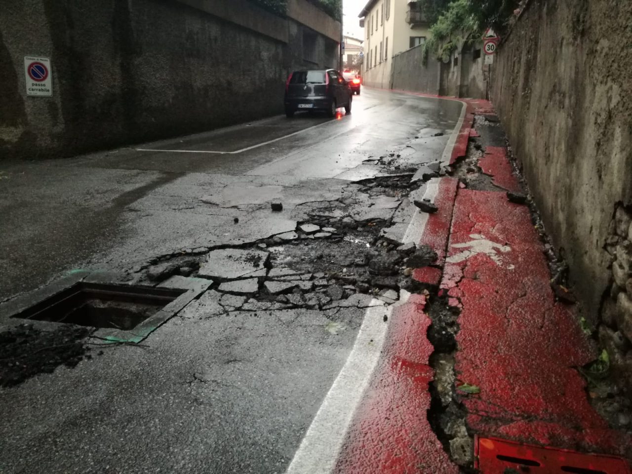 Pesanti i danni provocati a Merate con muri crollati e asfalto sollevato. Basta guardare le foto di via Trieste e via San Francesco.