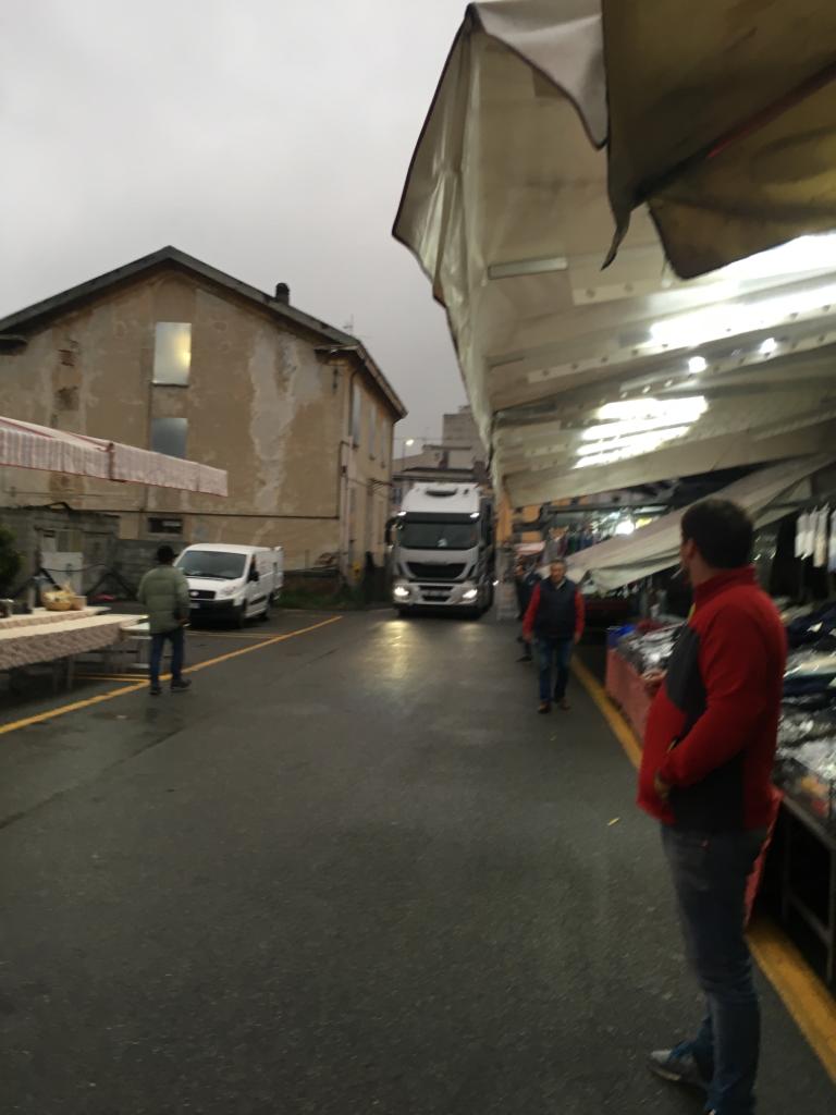 Il grosso mezzo ha “fatto il pelo” ai banchi vendita, senza però fortunatamente creare alcun danno alle strutture ambulanti e tantomeno alla merce esposta. In tanti però si sono interrogati: cosa ci faceva il super camion in una zona che il mercoledì mattina è decisamente affollata?