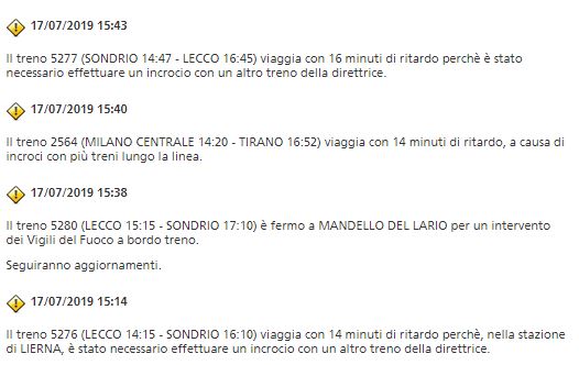 L’incredibile episodio è avvenuto poco prima delle 16 e il convoglio si è fermato in stazione a Mandello. Visto il fumo bianco uscire dai vagoni è partito l’allarme con la richiesta di intervento ai Vigili del Fuoco. Sul posto sono intervenuti con tempestività i pompieri di lecco che hanno ben presto scoperto che non si trattava di un incendio, ma appunto di una torcia fumogena, simile a quella utilizzata nelle coreografie da stadio. Ovviamente l’episodio ha avuto conseguenze sulla circolazione dei treni. Ecco la situazione al momento sulla linea.