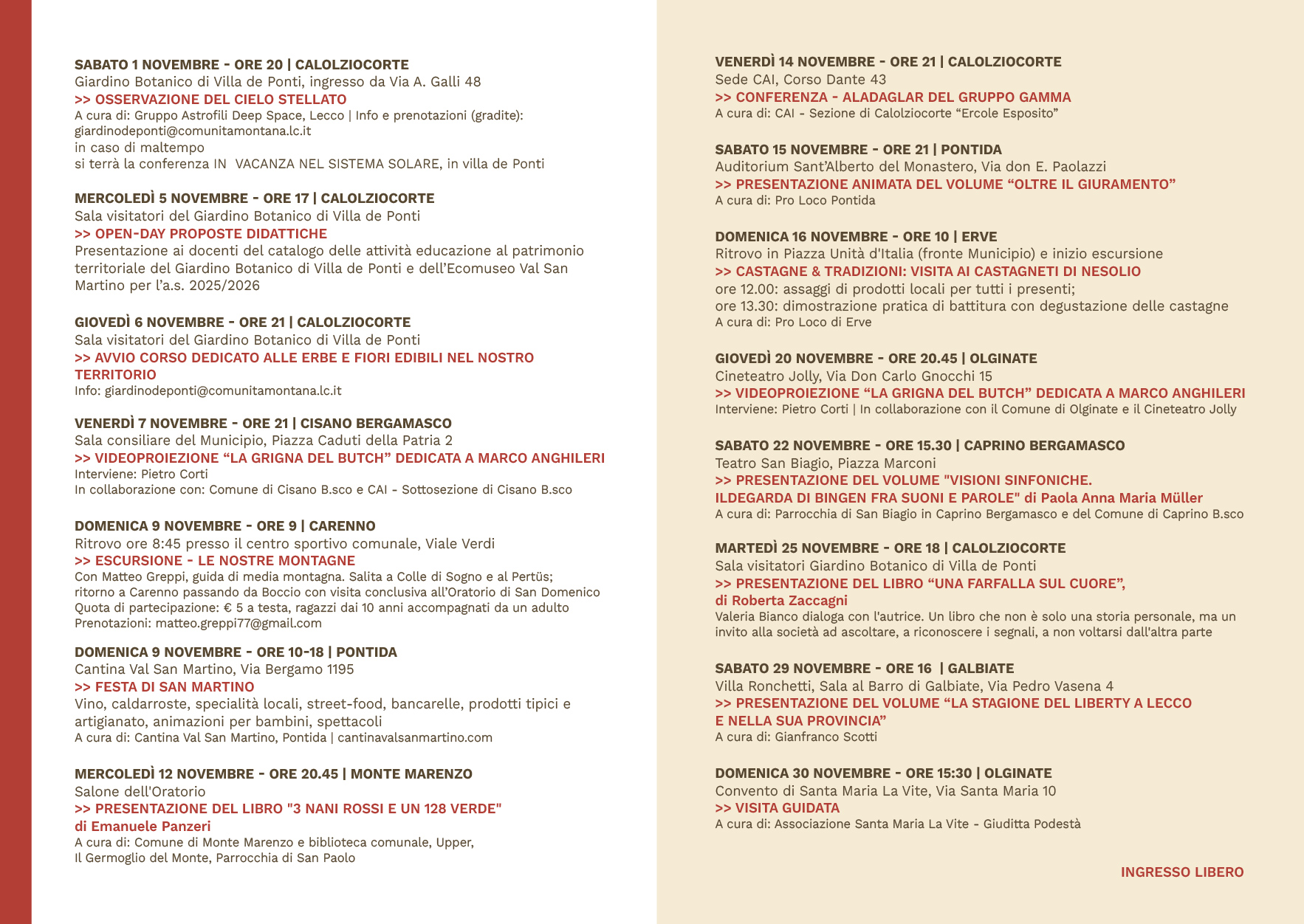 La manifestazione, organizzata dalla Comunità Montana Lario Orientale Valle San Martino in collaborazione con la Parrocchia di San Martino Vescovo, prenderà il via sabato 1 novembre e offrirà un programma ricco e variegato, frutto della sinergia tra istituzioni, enti e associazioni locali.