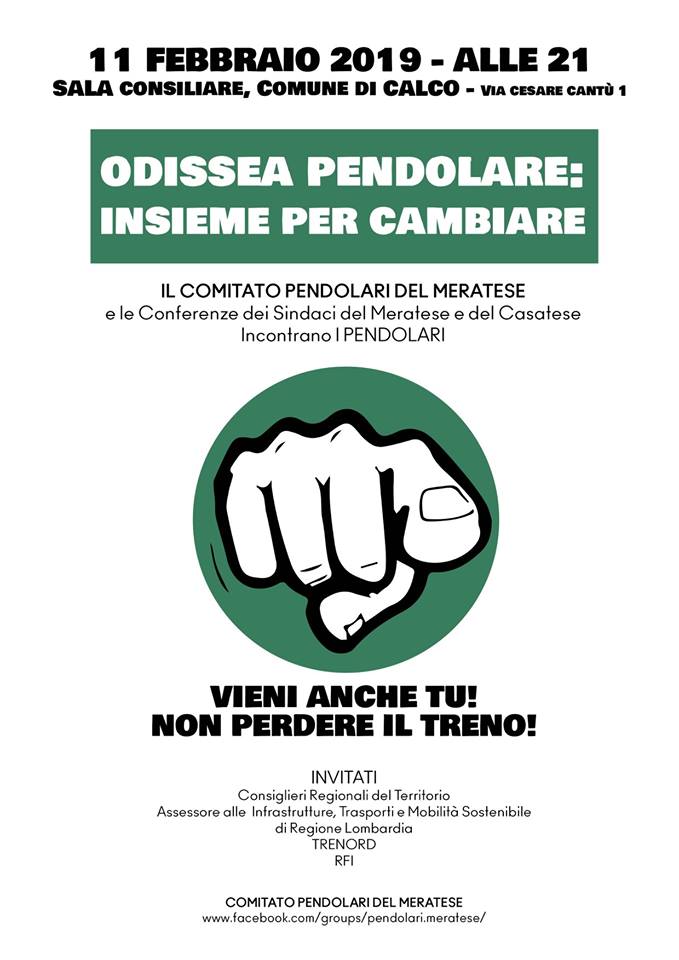 “Noi però siamo convinti che con una politica oculata e con i giusti investimenti le cose possano cambiare e che molto si possa fare ancora per migliorare e che la strada vada percorsa tutti insieme” spiegano dal Comitato Pendolari del Meratese. All’evento sono stati invitati l’assessore regionale Claudia Maria Terzi, i Consiglieri del Territorio Lecchese, l’Amministratore Delegato di Trenord Marco Piuri e il Direttore di Rfi Luca Cavacchioli.