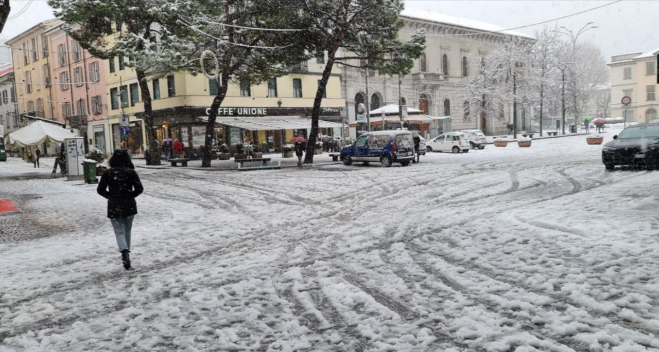Un manto bianco ricopre il centro di Lecco. Questa mattina i lecchesi si sono svegliati e hanno visto la città imbiancata.