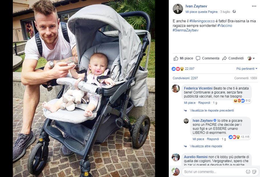 Il campione di pallavolo ha postato una foto su Facebook che ritraeva lui e sua figlia Sienna subito dopo essere stata vaccinata contro il meningiococco. Voleva solo raccontare un evento legato alla vita della sua bambina. Ma non tutti l’hanno pensata così perchè sono state molte le persone contrarie ai vaccini che si sono sentite urtate. Sotto la foto, i commenti dei “no vax” sono arrivati a valanghe: alcuni civili, ma altri pieni di offese e auguri di morte.