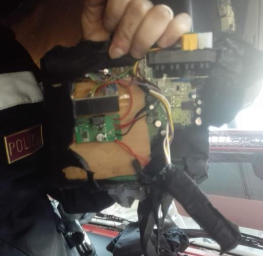 La presenza di troppe incoerenze ha portato  alla decisione di controllare il mezzo presso un’autofficina e verificare l’intero impianto installato sul veicolo, per ricercare eventuali manomissioni o alterazioni. La tenacia e determinazione degli agenti hanno avuto la meglio sulla complessità delle operazioni di controllo, tanto che dopo un accurato smontaggio, i poliziotti hanno trovato nel sottotetto del mezzo pesante, una centralina fraudolenta posizionata sul cablaggio del sistema cronotachigrafo, che aveva l’obiettivo di influenzare i segnali provenienti dal sensore kitas nel cambio.