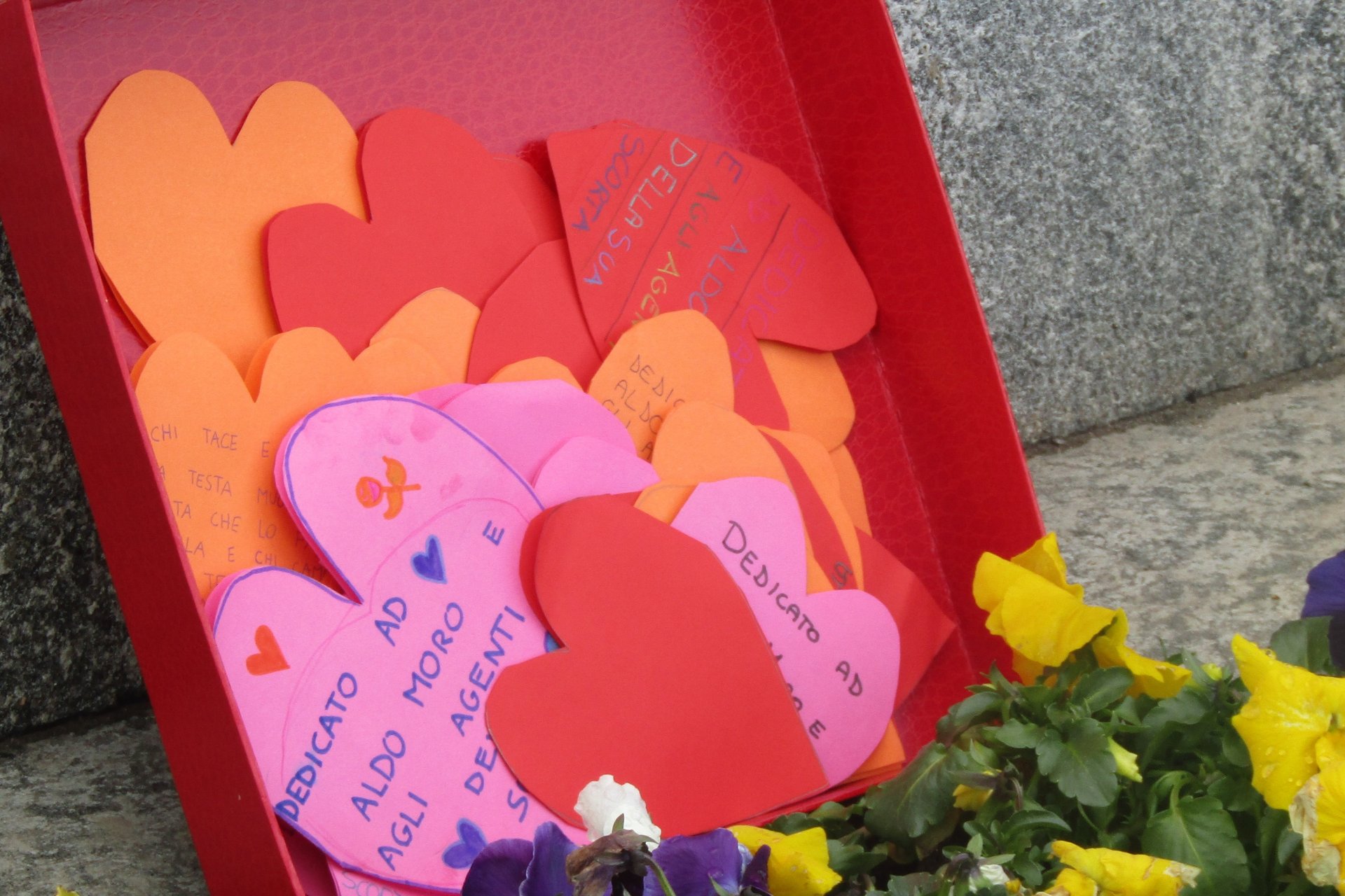 Il memoriale si è svolto venerdì mattina, 16 marzo, in via Aldo Moro nella frazione di Pagnano. Proprio qui è collocato infatti il monumento dedicato all’onorevole Moro e agli uomini della sua scorta. Presenti i bambini di quarta e quinti elementare di Pagnano con le loro maestre, il sindaco di Merate Andrea Massironi, gli assessori Giusi Spezzaferri e Silvia Sesana, i consiglieri Fiorenza Albani e Alessandro Pozzi, le Forze dell’Ordine, il preside dell’istituto comprensivo di Merate, prof. Dario Maria Crippa, e il preside del Collegio Villoresi di Merate, prof. Stefano Motta. Poco prima del discorso del primo cittadino, è stata posta una corona d’alloro di fianco al monumento e, al termine della celebrazione, alcuni giovani studenti hanno collocato dei cuori con alcune frasi di “uomini grandi e importanti” ai piedi del blocco di pietra.