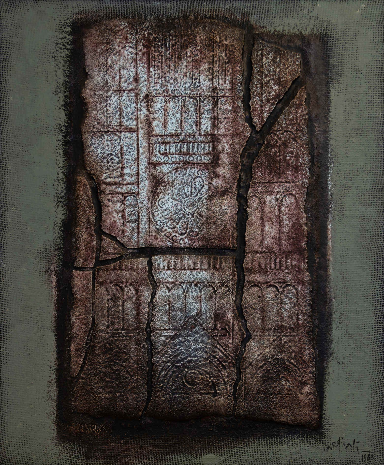 In corrispondenza a questo processo materico si assiste ad una semplificazione delle immagini che tende fortemente all’astrattismo e richiama un simbolismo privato dell’artista come cerchi, onde sinusoidali, croci; sono significativi in proposito Fossile lunaire del 1967,Trames liguriennes del 1968 e Segnale propiziatorio del 1977, oltre ai lavori ispirati al mondo naturale, composto da ambienti e animali che vanno a creare bestiari curiosi e inquietanti, come fossero fossili impressi sulla tela, e rivelano un’insoddisfazione personale e artistica che si evince dal tratteggio profondo, dai paesaggi inquieti e dall’increspamento delle superfici. Anche la dimensione delle tele aumenta, così come il loro peso: sono come “nuovi dolmen” di un tempio che Cardinali sta dedicando alla sua arte inquieta, che sembra pretendere una redenzione o un sacrificio.