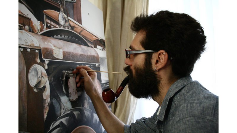 Un’opera che si affiancherà, qui, al lavoro dell’altro residente 2018, Leonardo Prencipe, in mostra con gli acquerelli dipinti durante l’anno di permanenza in Villa. Creazioni, quelle di Prencipe, che hanno come protagonisti i “relitti industriali” che caratterizzano il suo raffinato lavoro. Nello specifico, l’artista rende omaggio, qui, soprattutto alla Moto Guzzi, stabilendo così un forte legame con il territorio in cui ha lavorato. «I veicoli ritratti – spiega Bartolena – sono svariati: automobili, furgoni, scafi di panfili, motorini. Le loro carrozzerie arrugginite conquistano una nuova ragione d’essere, ritrovano la propria bellezza, smettono di essere rifiuti da sfasciacarrozze e tornano a essere protagonisti. La tecnica impegnativa ed elegantissima dell’acquerello contribuisce ampiamente al fascino di queste immagini, che si metteranno in dialogo con le garze della Ferzoco».