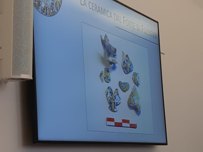 Infine, Sbriglio ha ricostruito anche la scoperta dei cocci del Forte Fuentes: “Nel 2022 siamo stati contattati dal Nucleo dei Carabinieri per la Tutela del Patrimonio Culturale abbiamo visionato le circa 80 cassette della frutta che contenevano questi frammenti ceramici. Il ritrovamento ci dà il la per iniziare un vero e proprio studio su questo tipo di ceramica che a Lecco manca. Si tratta sicuramente di materiale risalente al 1600-1700, quando il Forte era attivo, ed è stato tutto recuperato da un butto, ossia un punto dove venivano gettati i cocci di ciò che non era più utilizzabile. Fatto lo studio potremo capire dove verrà esposto questo vasellame da mensa che potrebbe darci informazioni utili sul luogo della loro produzione e sulle abitudini alimentari del tempo. Questo potrebbe spingerci anche a realizzare un vero e proprio scavo archeologico al Forte”.