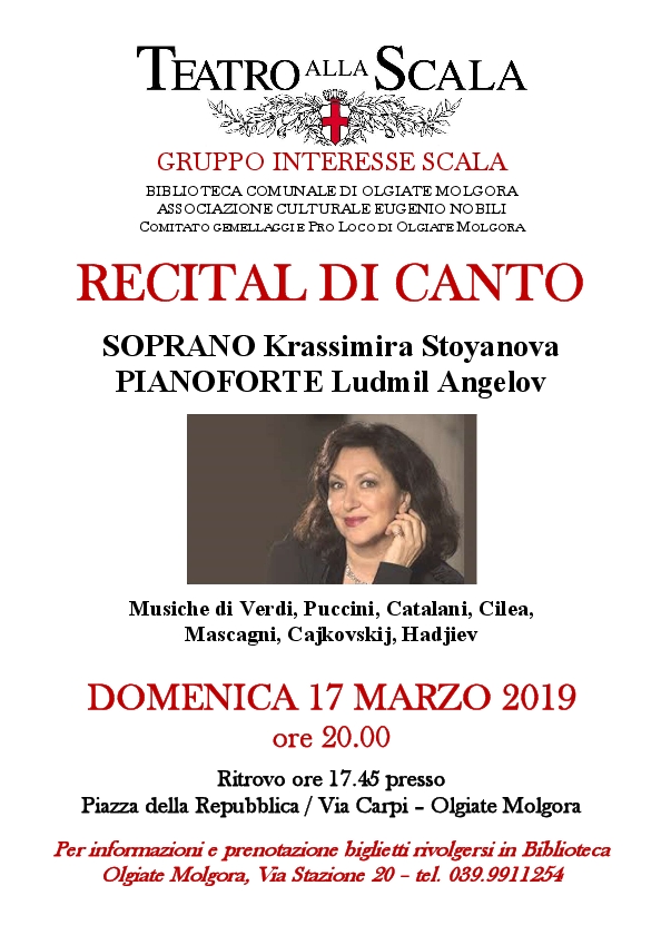 Uno spettacolo musicale che vedrà la cantante Krassmira Stoyanova come soprano del recital e al pianoforte Ludmil Angelov. Gli ultimi posti disponibili in platea e nei palchi saranno a prezzo agevolato di 11 o 18 euro. Si potranno ascoltare le meravigliose musiche di grandi artisti come Verdi, Puccini, Cajkovskij e molti altri.