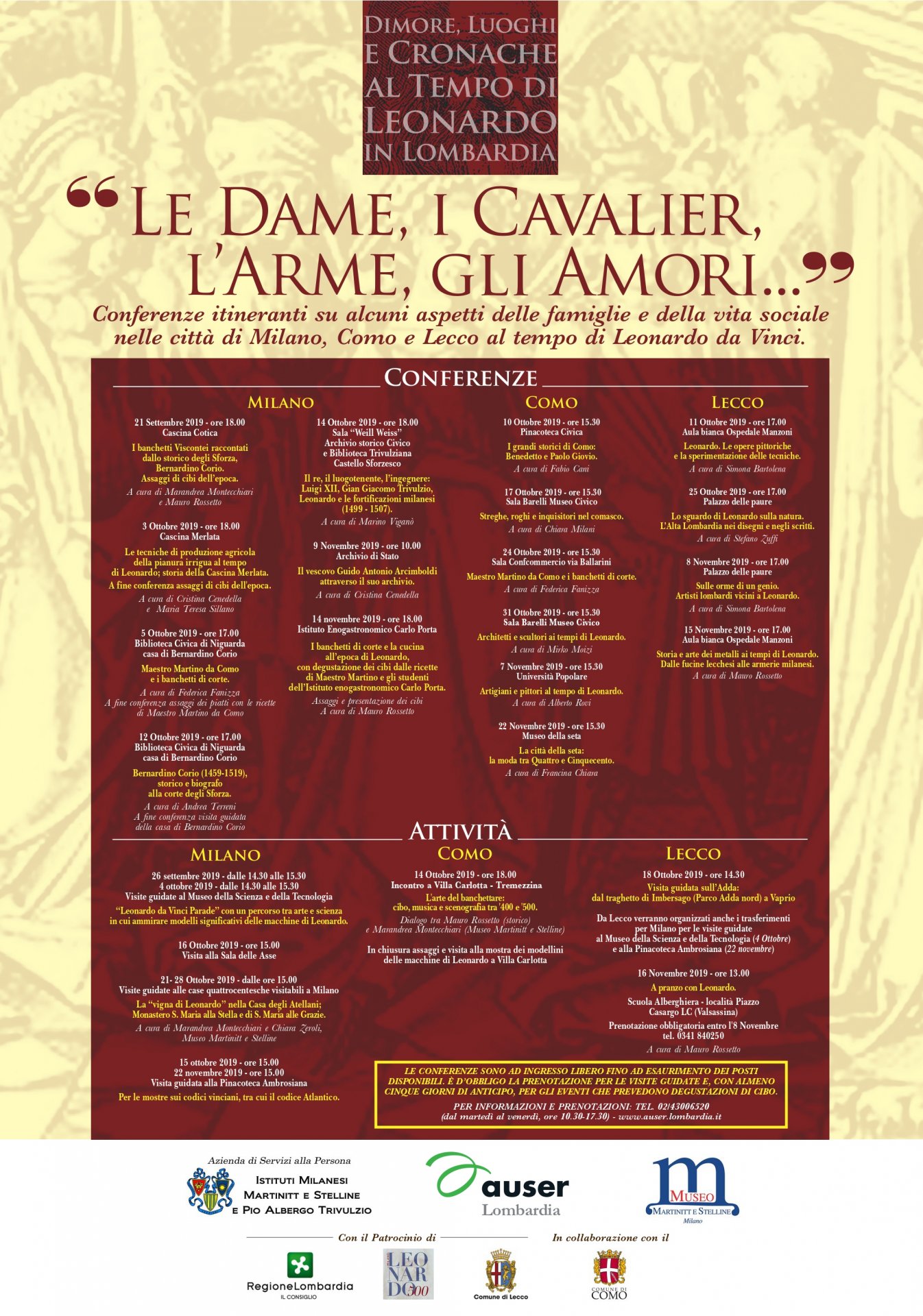 “Le dame, i cavalier, l’arme, gli amori…” è una rassegna organizzata tra settembre e novembre, a Milano, Lecco e Como, da Auser Lombardia e Museo delle Stelline/Pio Albergo Trivulzio, con la collaborazione e il sostegno di importanti enti, associazioni e sponsor, dedicata al Ducato milanese al tempo di Leonardo da Vinci.