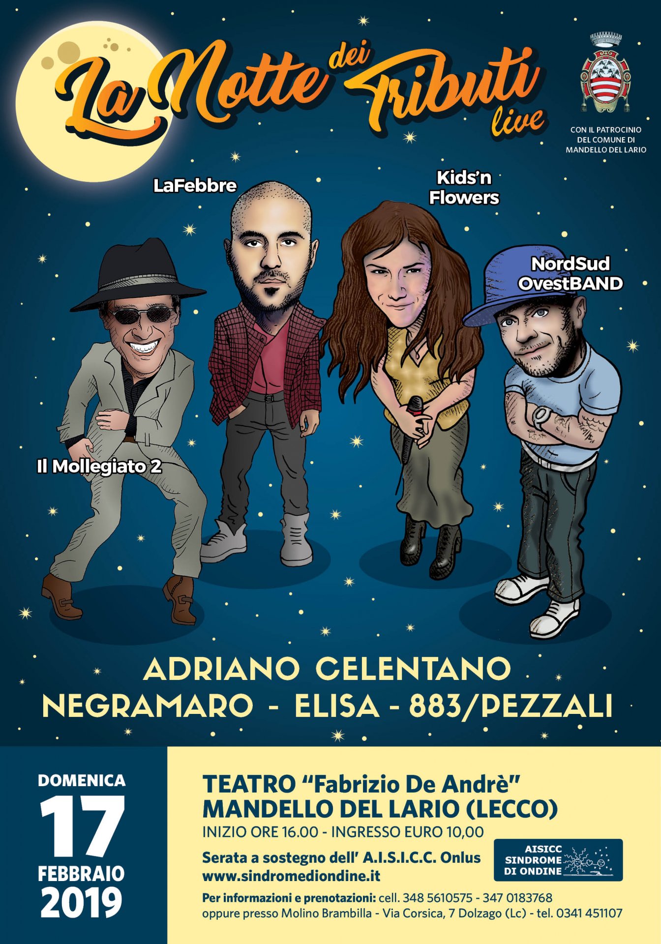 Adriano Celentano, Negramaro, Elisa, 883/Pezzali. L’appuntamento con “La notte dei tributi”, serata di musica e solidarietà è per domani, domenica 17 febbraio, a partire dalle 16, al teatro De Andrè di Mandello.
