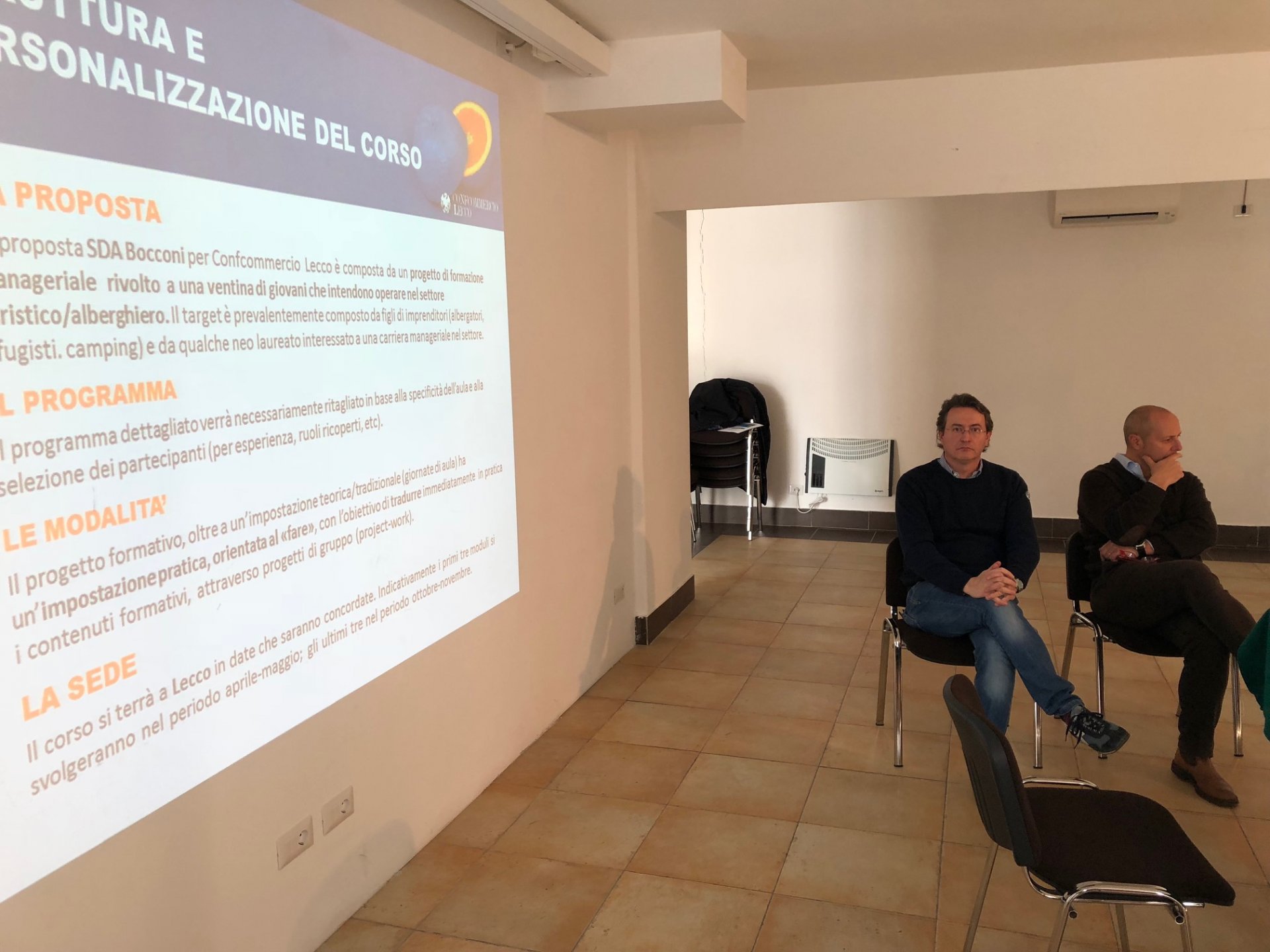“Questo è un progetto per il territorio e a misura delle vostre esigenze – ha esordito il presidente Peccati – E’ una opportunità da cogliere al volo, un investimento da fare per crescere e avere una visione strategica. Queste 18 giornate, con un partner di livello assoluto come SDA Bocconi, possono darvi la possibilità di svoltare e dare un’impronta nuova alla vostra attività. Come Confcommercio Lecco ci crediamo, abbiamo deciso anche quest’anno di investire risorse su questa proposta formativa e ci auguriamo che siano tanti gli imprenditori lecchesi che sappiano cogliere questa occasione unica, che permette di crescere con insegnamenti mirati e senza improvvisare alla cieca in un ambito così complesso come quello del turismo”.